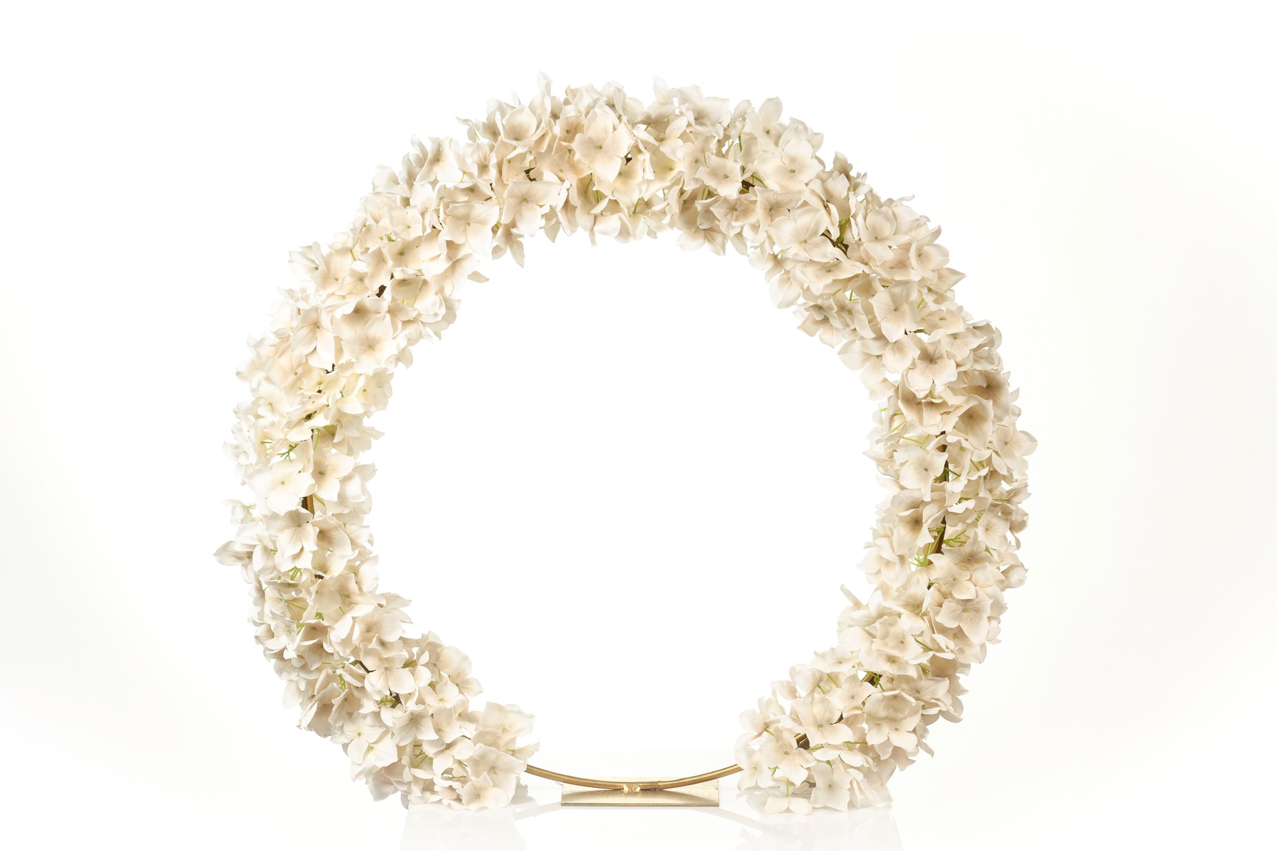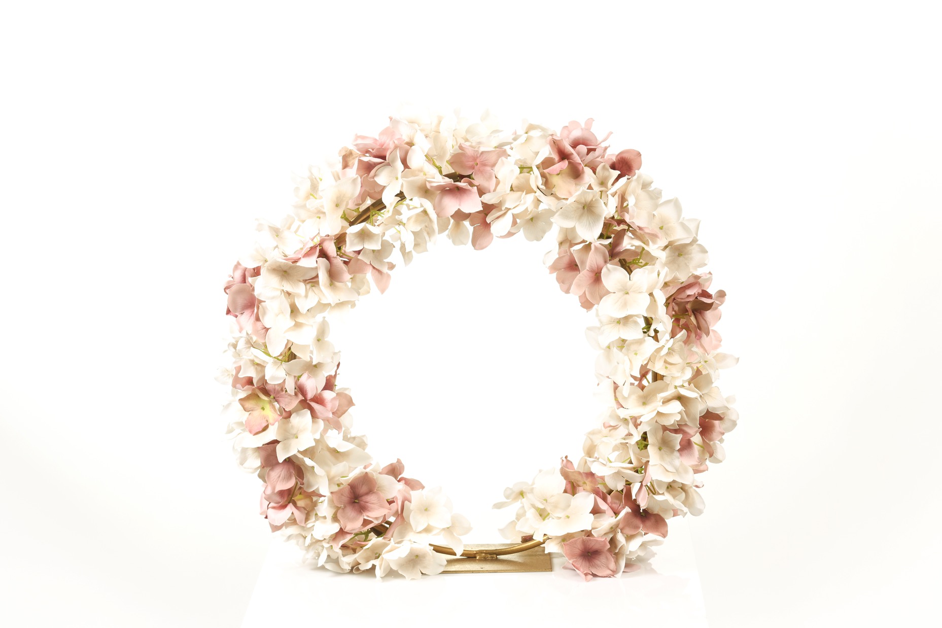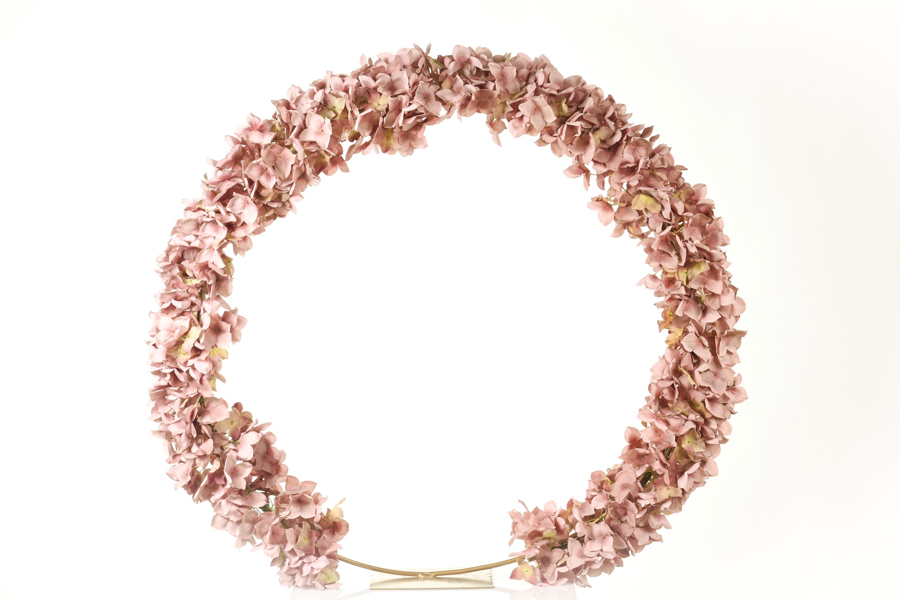 Στεφάνι στολισμών ορτανσία σε χρυσή βάση Φ40