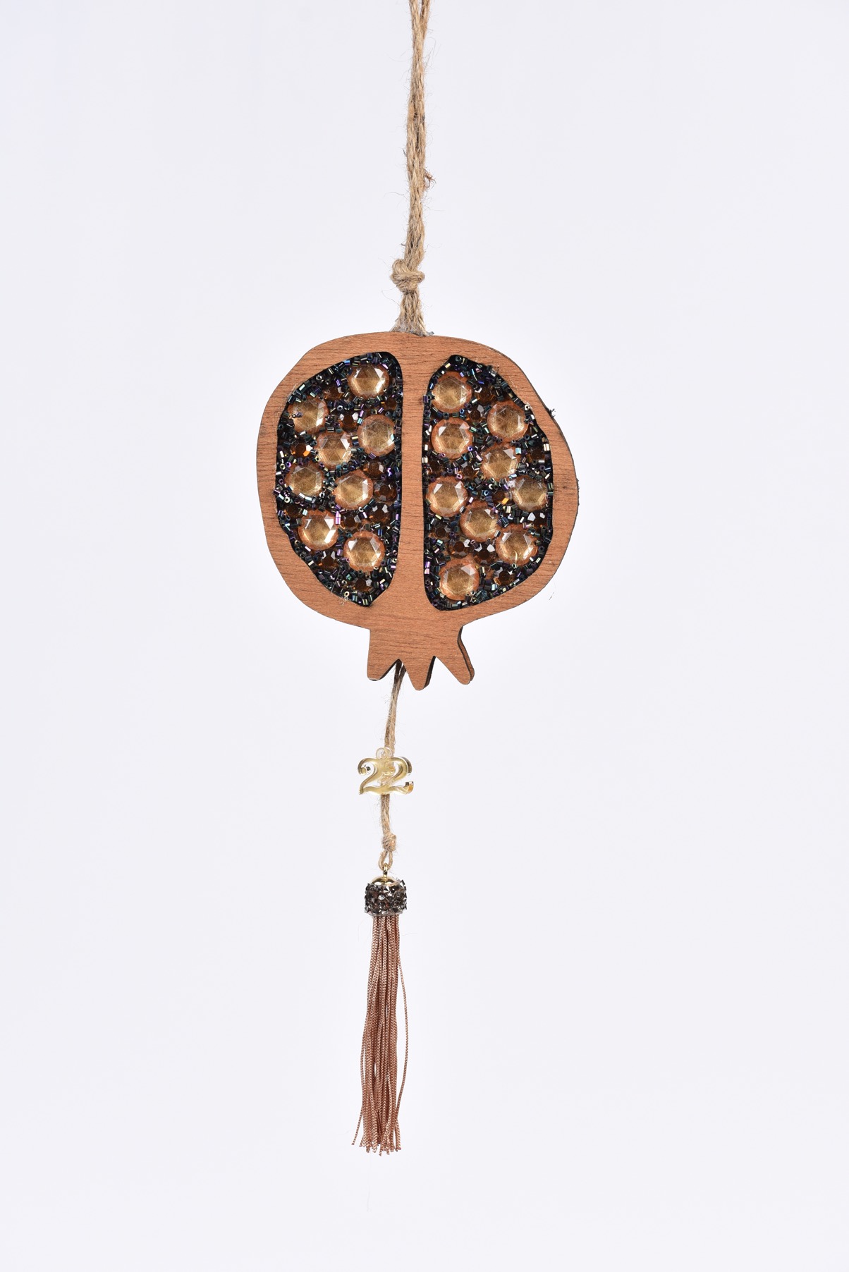Ξύλινο ρόδι κρεμαστό γούρι με χρυσά στρας και plexiglass “22”